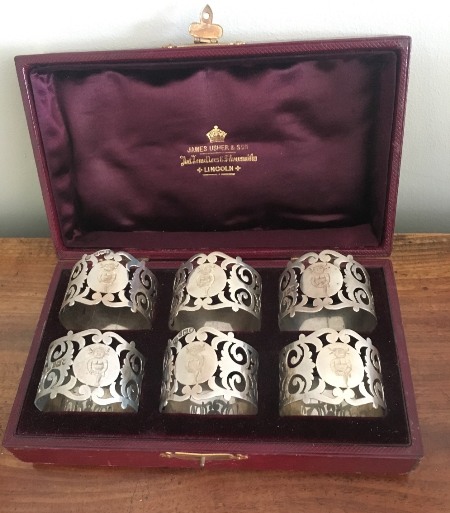 A set of 6 napkin rings engraved with the Lincoln Imp.
