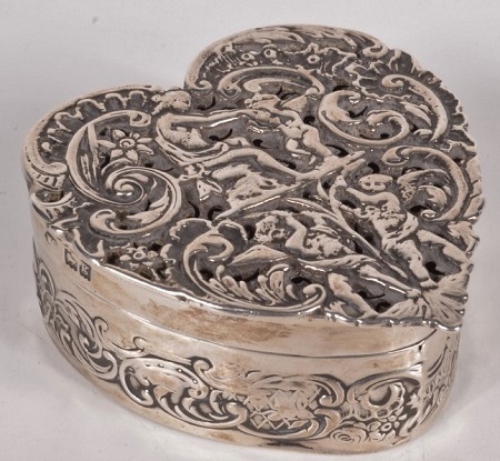 Comments Off on A William Comyns heart shaped pot pourri box | posted in Boxes & Jewellery Caskets, COMYNS SILVER, Pot Pourri Box
