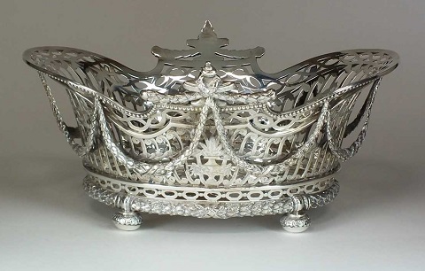 A William Comyns Victorian silver basket, London 1899, of oval pierced from with applied swag decoration, beaded rim and raised on acanthus leaf capped compressed bun feet, 31cm wide, 14.5cm high, weight approx 44.7oz