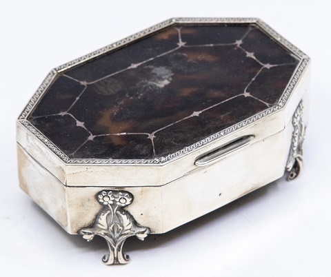 A George V silver and tortoiseshell box