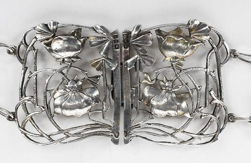A silver Art Nouveau style belt.