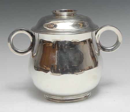 A substantial modernist George VI silver ox eye cup and cover, 24.5cm wide, William Comyns & Sons Ltd, London 1937, 37.5oz