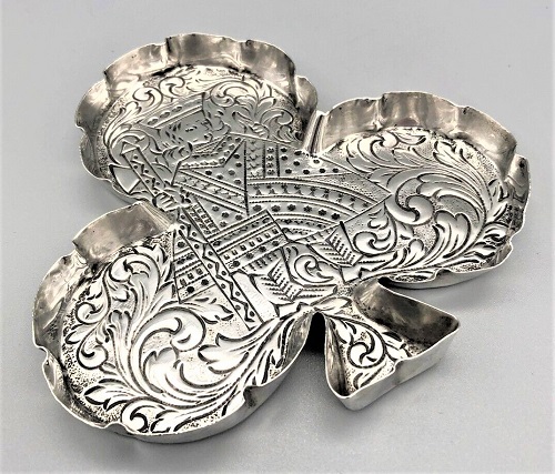A Victorian Sterling Silver Dish with a Jack or Knave of Clubs design.