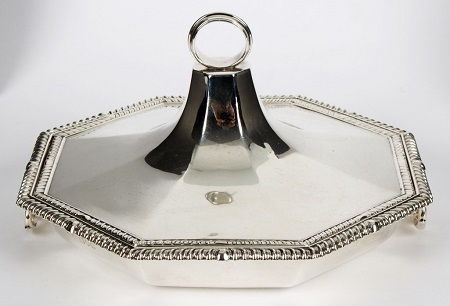 A Victorian Sterling Silver Dish with a Jack or Knave of Clubs design.