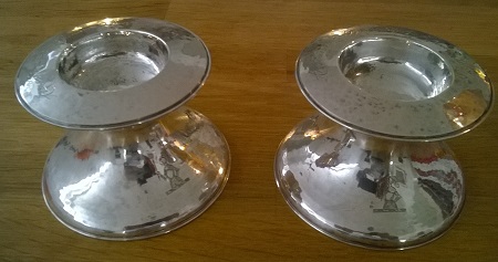 A pair of 1930’s silver pedestal table salts. Engraved with ‘Armorers and Brasiers Company 1938’ and a coat of arms.