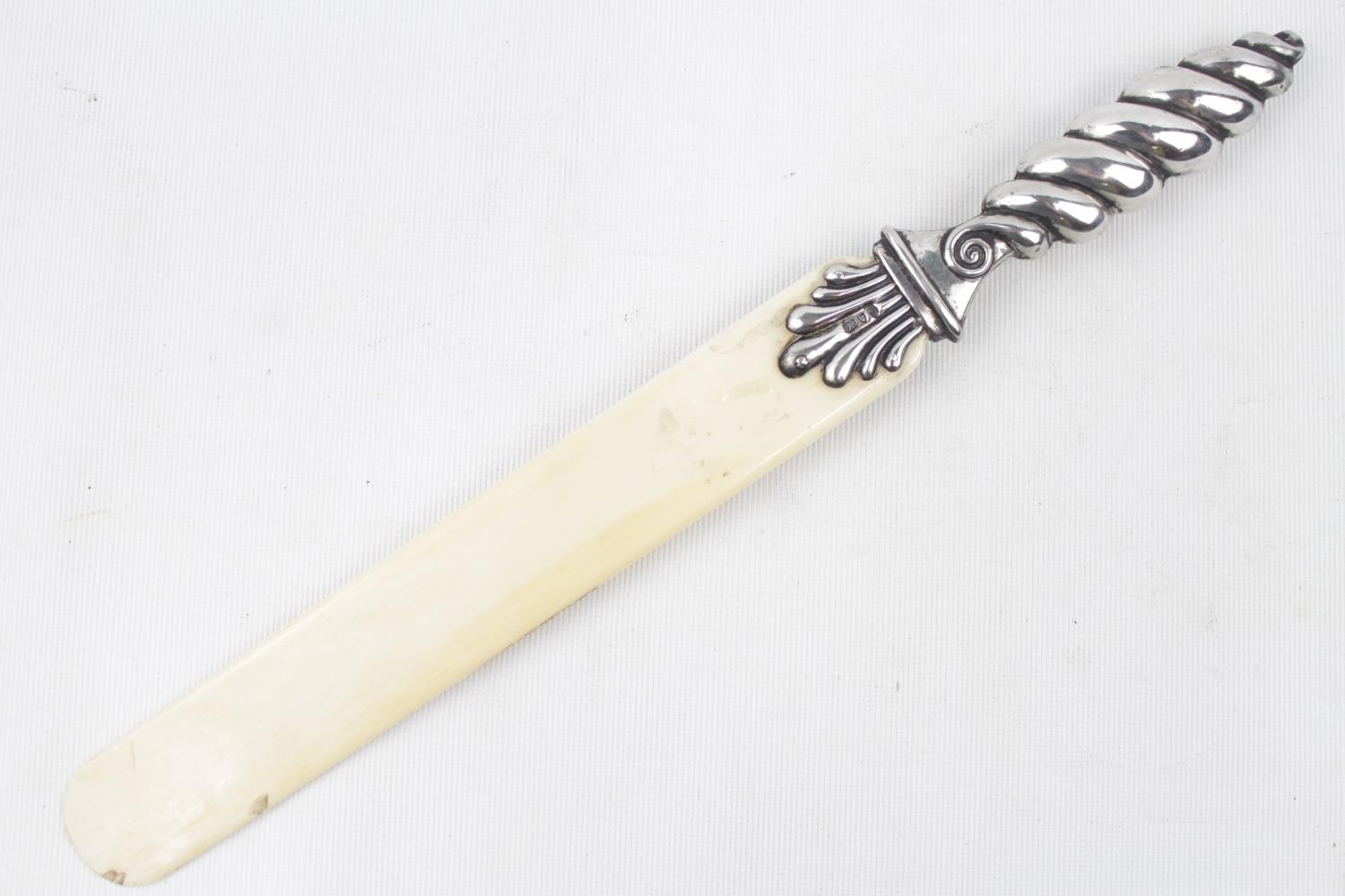 A silver mounted Ivory Page Turner with embossed figure on the hilt in original case