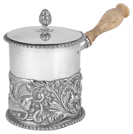 foliage hinged lid turned ivory handle gilt interior 9.5cm 287gr